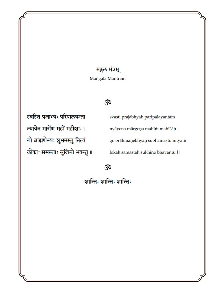 El mantra final, llamado Mangala es una invocación por la paz, la armonía y el bienestar colectivo, una manera de cerrar la práctica deseando un mundo más justo, pacífico y consciente para todos.