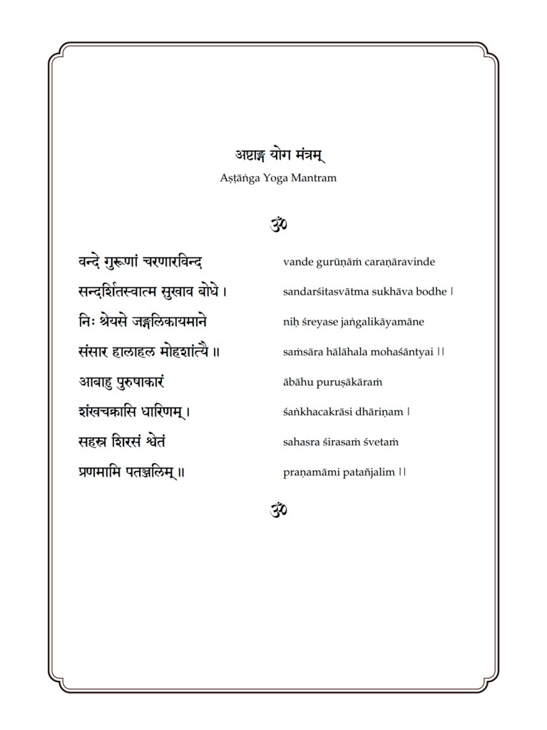 En la práctica tradicional del Ashtanga Yoga se entonan dos mantras: uno al comenzar y otro al cerrar la práctica.